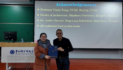讲座尾声,主持人尚雪副教授对Thanik教授的精彩报告进行了总结。尚雪副教授表示,Thanik教授通过大量的考古实证和民族学比较,为我们揭示了中泰两国在史前时期就存在的紧密文化纽带,特别是将岩画这一精神文化载体与物质遗存相结合的研究方法,极具启发性。随后,尚雪副教授为Thanik教授颁发了本次明德讲堂的讲座证书。在同学们热烈的掌声中,本场关于中泰史前文化联系的全英文讲座圆满结束。