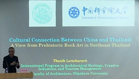 2025年12月11日18:30-20:30,中国科学院大学明德讲堂文明系列讲座M1102在雁栖湖校区教一楼002举行,本次讲座以“Cultural Connection Between China and Thailand: A View from Prehistoric Rock Art in Northeast Thailand”(中泰文化联系:泰国东北部史前岩画视域下的考察)为题,由泰国艺术大学(Silpakorn University)考古系副教授LERTCHARNRIT THANIK博士主讲。中国科学院大学人文学院尚雪副教授主持了本次讲座。Thanik博士是泰国艺术大学考古系副教授,他在泰国艺术大学考古系获得考古学学士学位,在美国华盛顿州立大学人类学系获得硕士和博士学位。在过去的30年里,他在泰国从事考古研究和文化遗产管理项目,发表了许多书籍、书籍章节、国内和国际同行评审期刊文章。