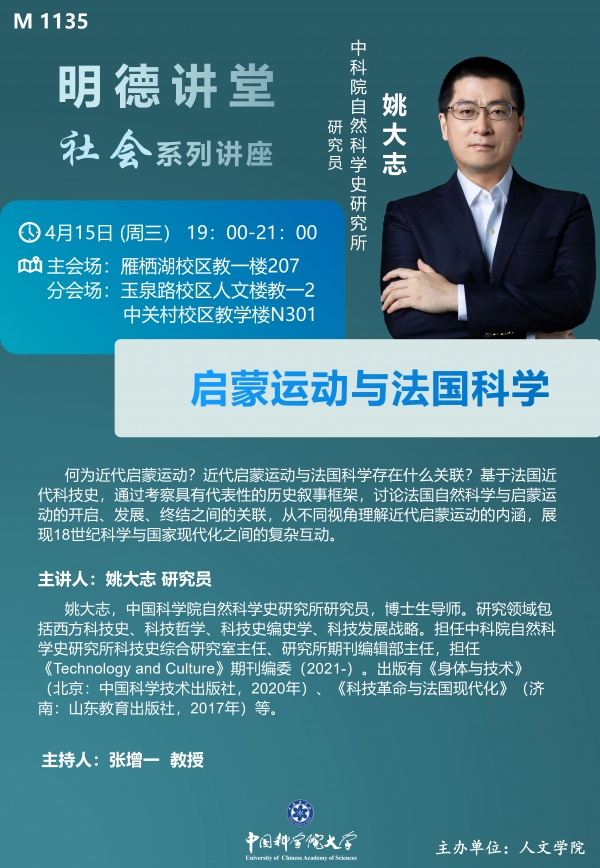 明德讲堂M1135预告:启蒙运动与法国科学