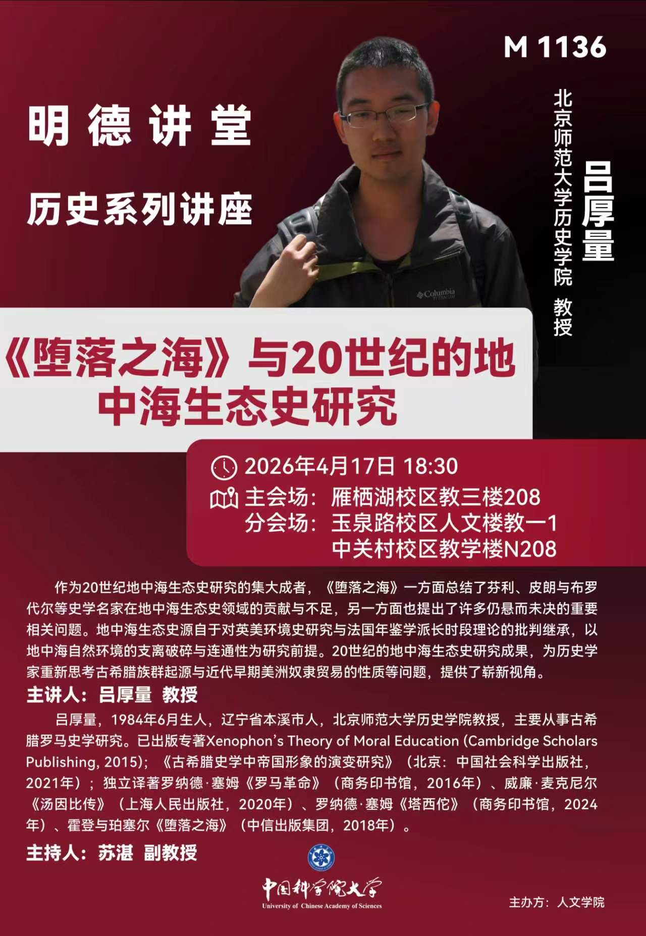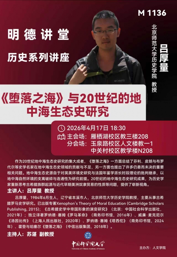 明德讲堂M1136预告:《堕落之海》与20世纪的地中海生态史研究
