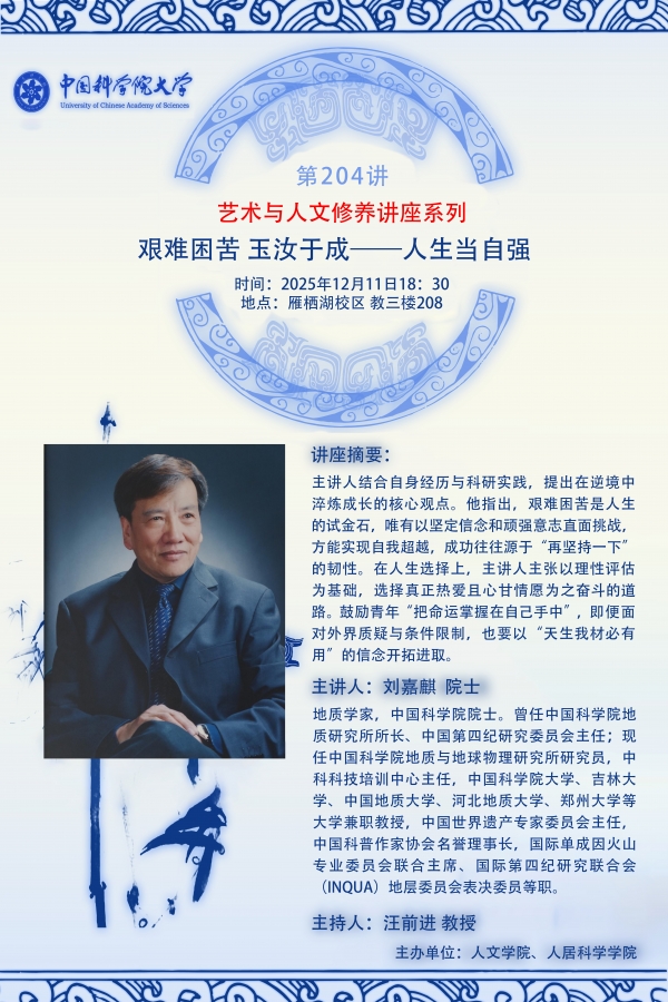 艺术与人文修养讲座系列第204讲:艰难困苦 艰难困苦 玉汝于成——人生当自强