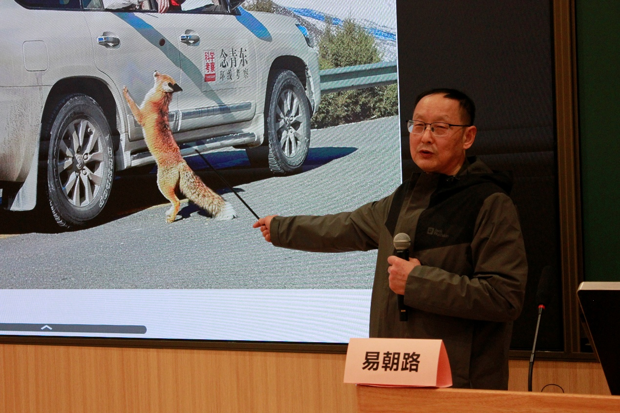 讲座伊始,易朝路研究员和同学们分享了进藏的三条道路,并详细介绍了从格尔木出发的线路——渴饮昆仑泉、翻越昆仑山,远眺长江源、跨越唐古拉山口,伴念青唐古拉山抵达拉萨;再从拉萨出发,绕行纳木错、夜宿羌塘草原,邂逅“鬼湖”色林错,最终抵达世界最高“县城”,考察阿乌雪山、阿木错等景观;还提及国家级羌塘自然保护区的自然风光、野生动植物相映成趣、中低纬度第一大冰原——普若岗日冰原上冰川-沙丘-湖泊共生的罕见奇观等。研究员展示了一系列精心拍摄的照片,还分享了诸多独家见闻,让同学们仿佛身临其境。